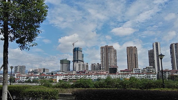 廣元市圖騰廣場,是廣元市最高的建筑,位于東街與北街交匯處,在嘉陵江的另一側看廣元主城區,海博春天如鶴立雞群,高聳云端。