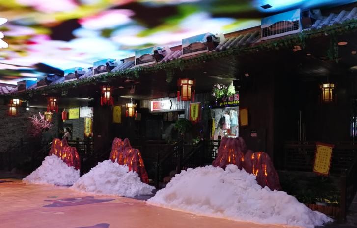 瞬間噴發大量雪粉,制造人群尖叫特別效果。大量雪花,極易在地面形成積雪,視覺沖擊強烈。