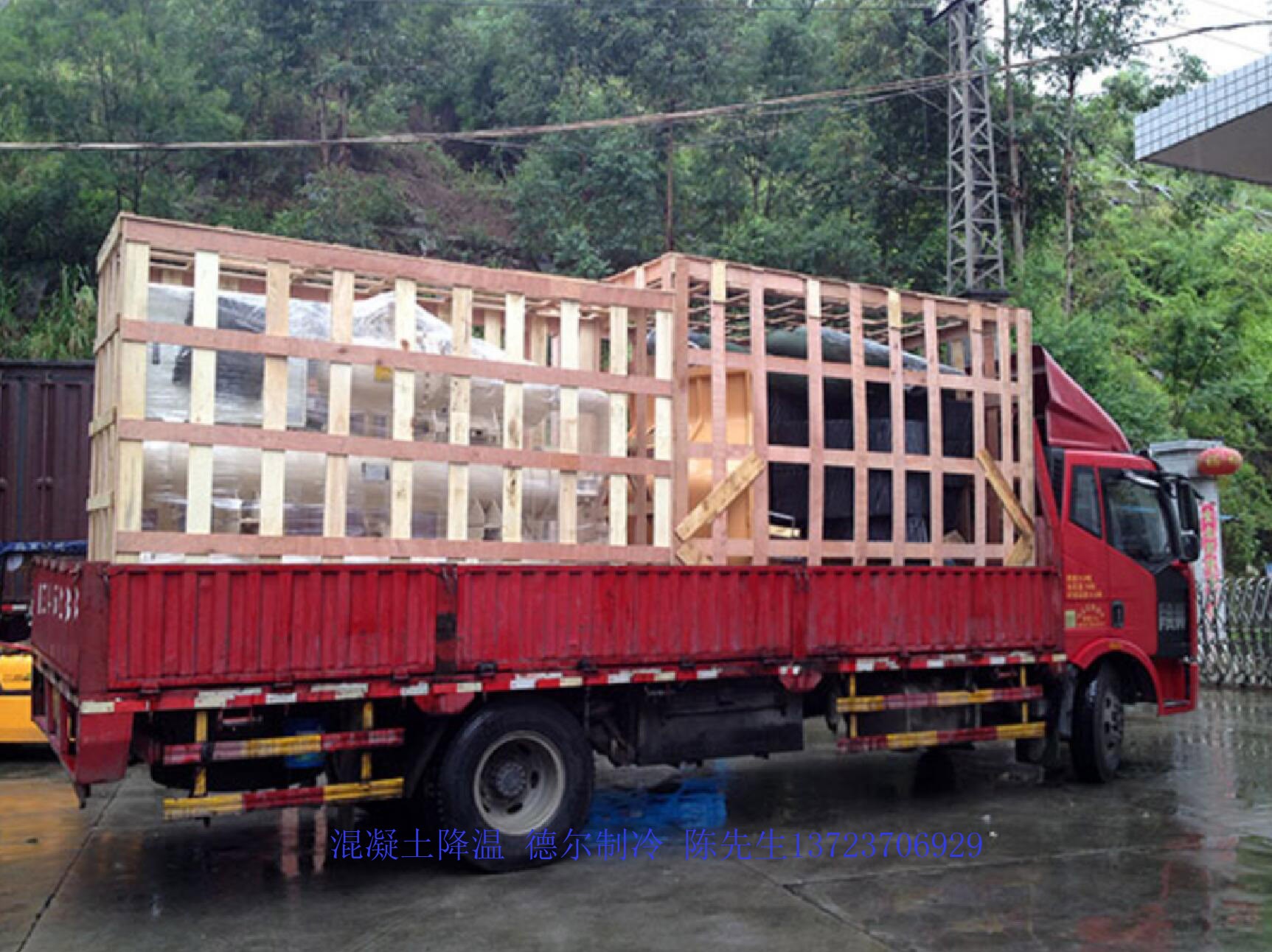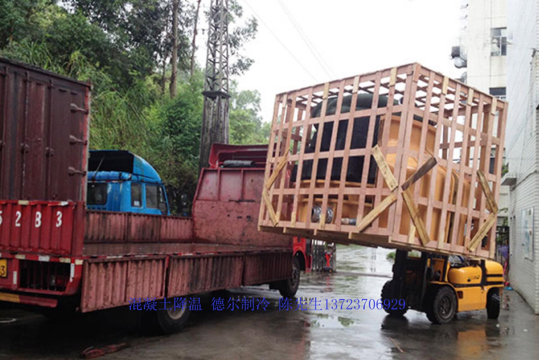 南海海洋地處中國南部海域,常年高溫,混凝土工程易受高溫影響,造成工程品質下降。公交二公局以專業化生產標準進行混凝土施工,通過采購我司混凝土專用冷水機,對混凝土進行有效的攪拌降溫和冷卻降溫,使混凝土的攪拌與凝固過程處于安全可靠的生產控制工藝,確保優質工程。 冷水機成套設備裝車中