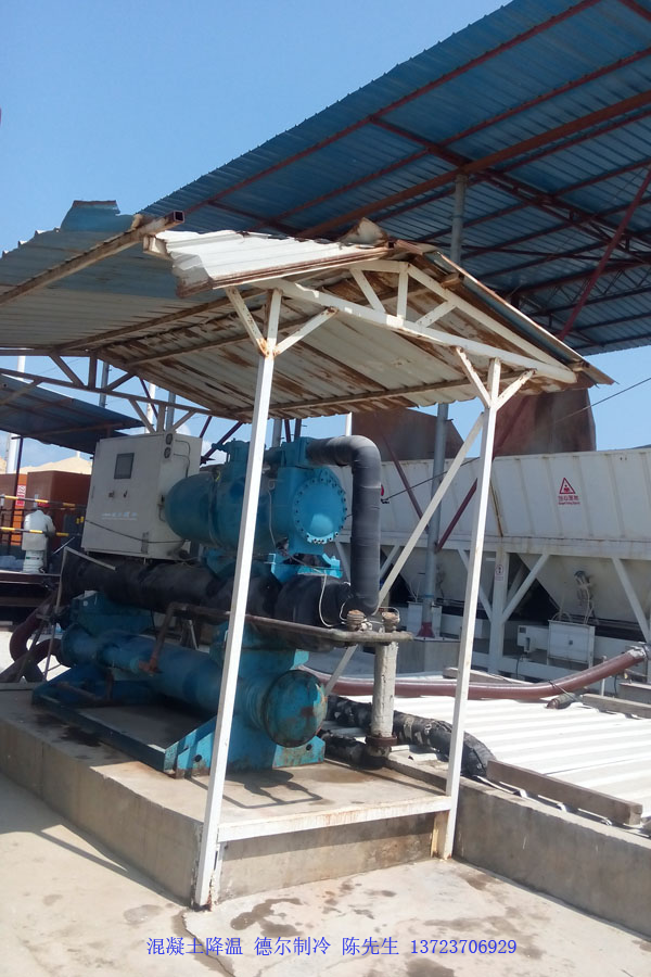 德爾制冷混凝土專用冷水機不懼風雨,堅守簡陋的雨棚下