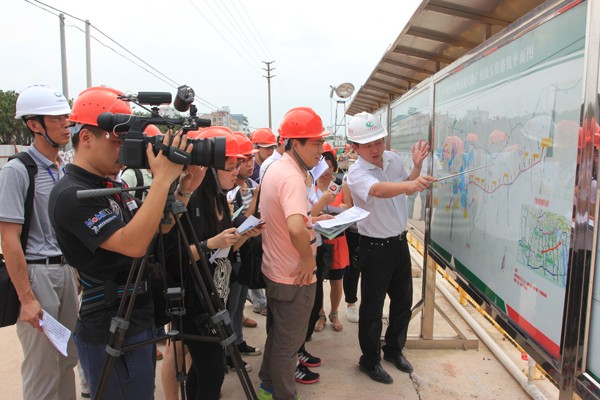 2014年6月5日,廣明高速SG06標項目部作為廣明高速媒體行活動的第一站迎來了境內外24家媒體的30余位記者,分別就項目亮點、施工進展等方面進行了全面詳細的說明并接受專題采訪。