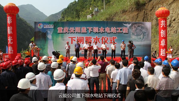 2012年8月10日,重慶云能投資興建的重慶市云陽縣蓋下壩水電站工程成功下閘蓄水。10時18分,隨著云陽縣委書記李洪義的一聲令下,巨型閘門穩穩落在導流洞進口閘槽底部后,下閘蓄水宣告圓滿成功。