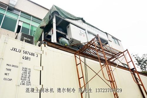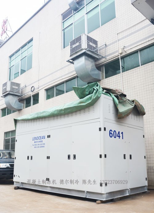 我司生產的混凝土專用冷凍水或制冰機組規格:5噸/時~200噸/時。可按照移動式冷水站的型式進行設計,生產,整機為集裝箱模式出廠,到了工業地只需用戶配好電源,把管道連接好即可使用。
